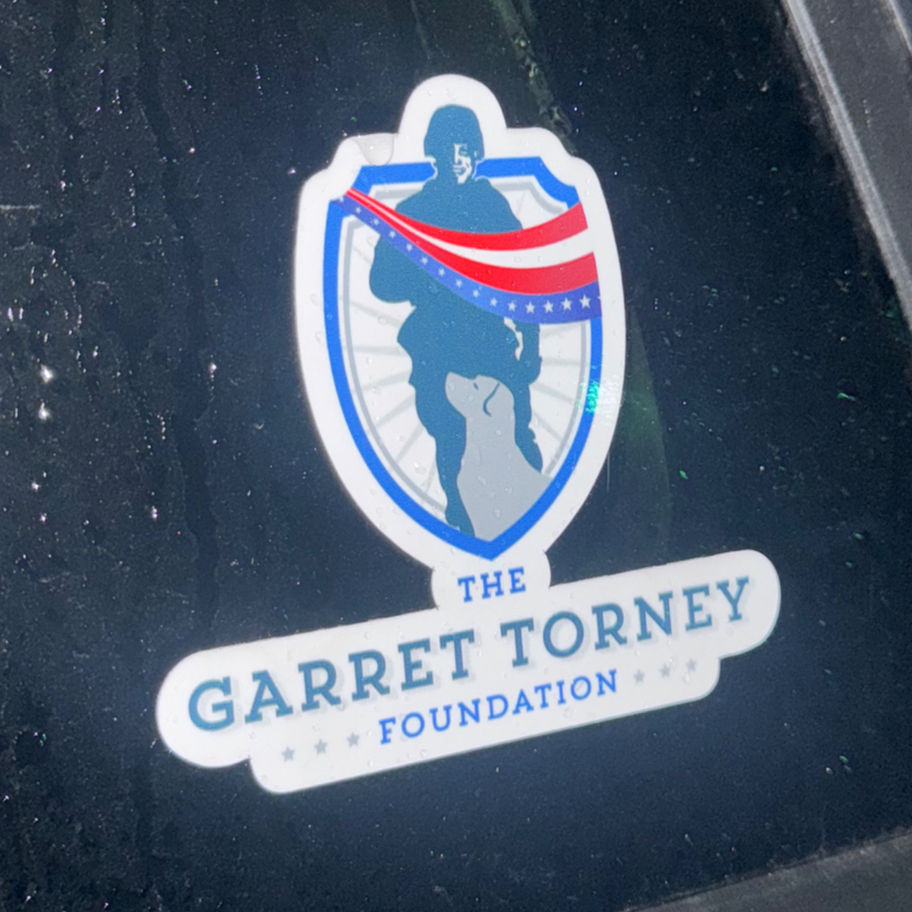 Show your support while you drive with our vinyl GTF window sticker. By displaying this sticker, you contribute to the Garret Torney Foundation’s mission of aiding combat veterans with PTSD. Each sticker symbolizes the strength and unity of our community, proudly declaring your commitment to our cause. Your purchase helps fund the training and pairing of service dogs, making a real difference in the lives of those who have served. Drive with pride, knowing you play a vital role in supporting our heroes.